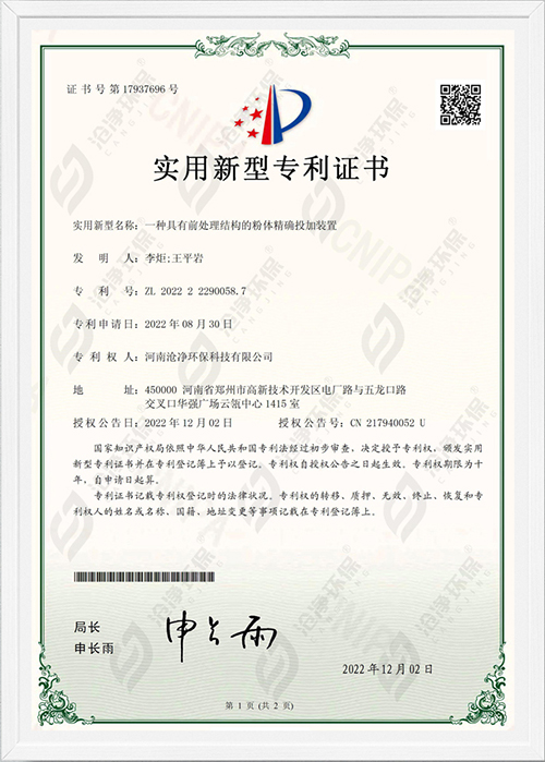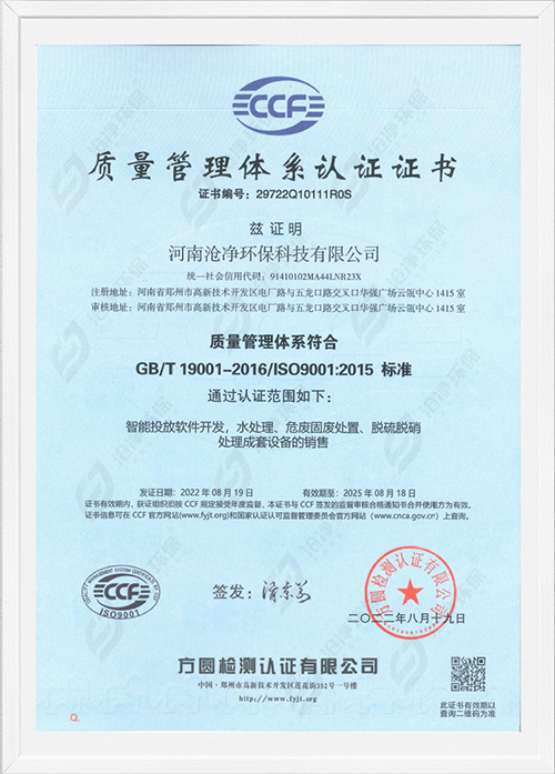 滄凈環(huán)保,是一家集科研、設計,工程施工、調試于一體的智能粉體投加系統(tǒng)-國家級高新技術企業(yè)【編號:GR202341000885】,旗下產品涵蓋水處理、危廢固廢處置,脫硫脫硝處理等領域,且通過ISO 9001:2015質量管理體系認證。